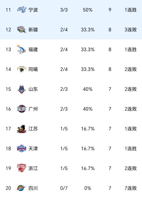 CBA太疯狂:辽宁爆冷翻车,前总冠军狂输36分+7连败 最新排名如下