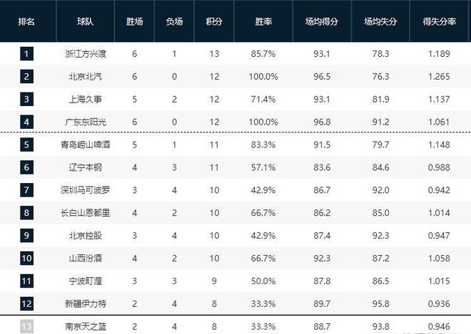 CBA积分榜:京粤不败领跑山东暂居第14克里斯领衔得分榜