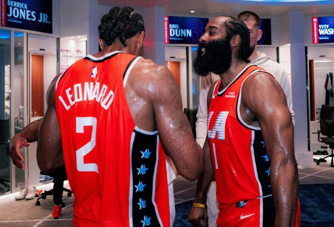 而进入12月份,场均29.5分7.6篮板。用泰伦卢话说,解除了出场限制后,球队运转流畅多了,于是12月份小卡出战的11场比赛,合计出场400分钟!小卡出战时,球队的赢球线是小卡场均要贡献33.5分8.1篮板4.4助攻,真实命中率66.4%!哈登在整个11月份场均29.8分6.3篮板8.5助攻,进入12月份场均数据有所下滑,只有23.7分6.6助攻3.3篮板。哈登出战时球队的赢球线,是场均30.9分5.3篮板9.0助攻。两个数字相加一下,快船想赢球,哈登和小卡可能需要保底65分左右的输出才行!而快船本赛季场均111.5分,联盟第28位!