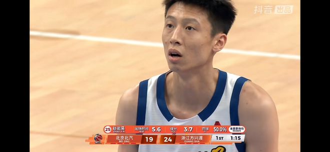但到了第二节,广厦的进攻效率明显下降,布朗多次外线尝试全部弹框而出,北京队则在赵睿的串联下,内外开花,广厦一度单节12比20落后8分,直到半场哨响前1分多钟,朱俊龙和孙铭徽连续投进的3个三分球,才帮助广厦艰难把比分再次反超,客场46比43领先3分。孙铭徽半场独得12分4次助攻,北京队外援斯佩尔曼也有10分进账。