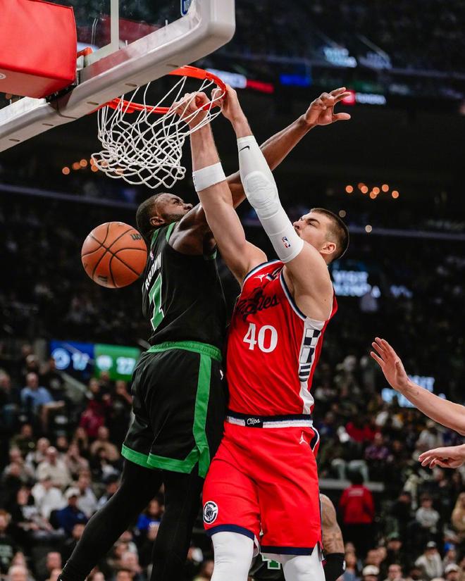 不过,小卡无法在防守端限制暴走的布朗,这也是快船完败的主因。