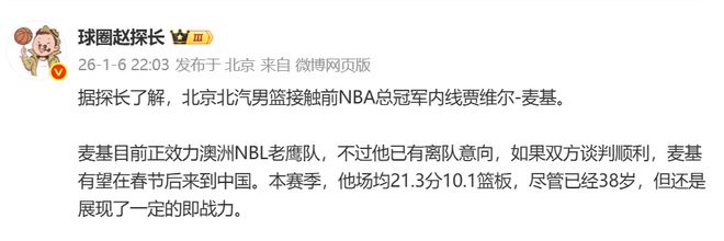 甚至现在他们已经传出准备签约麦基了。当然目前还在谈判中,并且麦基也已经有了离队的想法。他现在还效力于NBL的老鹰队,如果北京和麦基谈好的话,他会离开NBL,并加盟CBA。同时在本赛季,麦基场均21.3分10.1篮板。