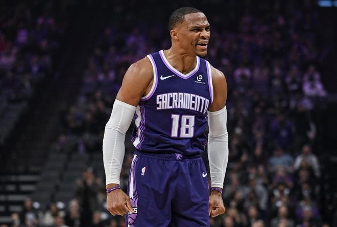 赛季至今,威少保持全勤,他为国王队出战43场,场均贡献15.3分+6.3篮板+7助攻+1.4抢断+2记三分球,三分球命中率高达36.1%,创个人生涯新高。这就是新赛季的威少,不仅用实力从施罗德手中抢到了首发位置,还焕发新生!截至目前,威少生涯总得分为26861分,排在NBA历史第15位,距离排名第10的奥尼尔(28596分)仅差1735分。按照威少的竞技状态和出勤率,这么打下去,威少未必能挑战30000分大关,但他绝对能超越奥拉朱旺(26946分)、海耶斯(27313分)、摩西马龙(27409分)、安东尼(28289分)和奥尼尔(28596分),冲进NBA历史得分榜前10!球迷朋友们,你们对此怎么看呢?来给我留言评论探讨一下吧。
