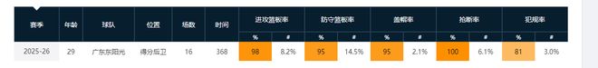 18次出场后,他场均15.1分9.1篮板3.9助攻,投篮命中率54.8%,三分命中率29.2%