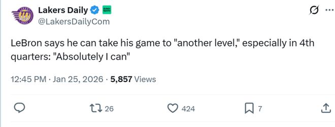 詹姆斯所言非虚,本赛季他在末节的表现一直十分出色,自从进入26年以来,詹姆斯末节已经拿下100分高居同期联盟第一。