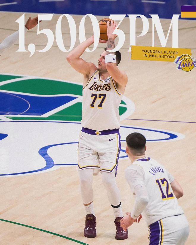 东契奇(26岁330天)生涯三分命中数来到1500记,超越塔图姆(26岁362天),成为NBA最年轻达成的球员。独行侠主场球迷,依然给东契奇送上MVP的呼声。上半场最后一攻,艾顿空接不中,东契奇被气懵了,走向独行侠的球员通道。