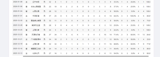 2026年01月25日 辽宁末节仅4分负新疆遭四连败 赵继伟缺阵 王岚嵚9中1 吴冠希18+8