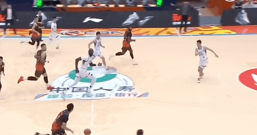 陶汉林、克里斯连续篮下造成威胁,扳平比分。而高诗岩用第4记三分,直接完成比分的反超!