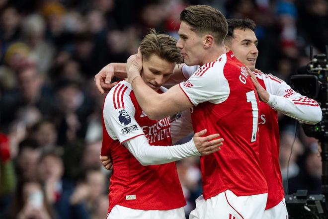 在与前皇家社会队友马丁-苏比门迪和米克尔-梅里诺组成的中场三人组中,厄德高表现出色,以身作则领导球队。