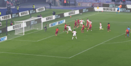 第82分钟,沙拉维禁区倒钩打门,皮球击中后卫头部被门将没收