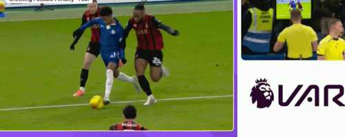 第10分钟,埃斯特旺右路突破杀入禁区,跟塞门约对抗之后倒地,裁判刚开始毫无表示,引发切尔西众将不满。在VAR提示下,主裁判亲自观看视频回放,随后判罚点球。