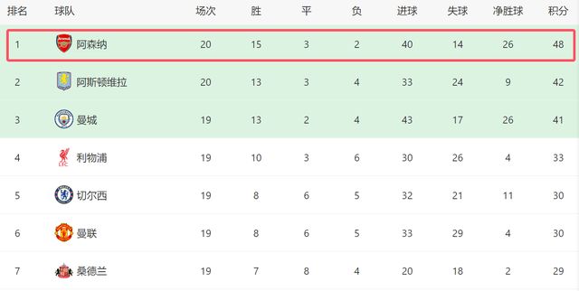 英超第20轮结束了4场比赛,最新积分榜如下!