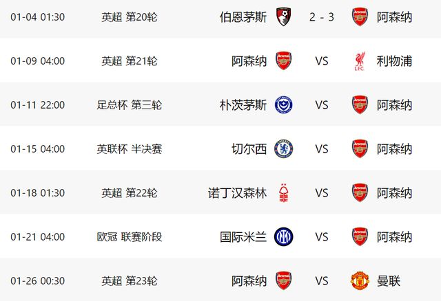 不过阿森纳依然不能大意,因为接下来,他们就将迎来一波魔鬼赛程。根据安排,下一轮阿森纳将在主场迎战利物浦,之后他们还将出战足总杯和联赛杯半决赛,随后又要踢英超和欧冠,在差不多17天的时间里,阿森纳要踢6场比赛,期间他们将遇到利物浦、切尔西、国米和曼联4大豪门。其中英超2场大战事关争冠,联赛杯半决赛首回合的结果,将对阿森纳能否进入决赛有决定性的影响,欧冠对阵国米,也事关阿森纳能否锁定小组第一,这些比赛,阿森纳都肯定要全力以赴。