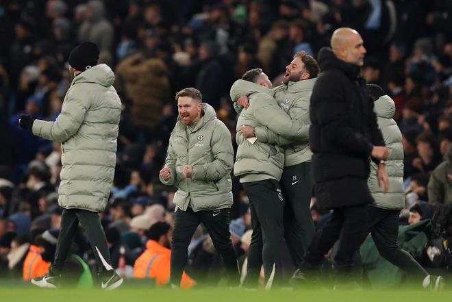 4,曼城那边,整体境遇已经全面转好:他们的12月份是7连胜的豪迈,包括5场英超、1场欧冠、1场英联杯全胜。进入到1月,曼城先是和桑德兰0-0握手言和,随后今天凌晨的英超焦点战,第42分钟莱茵德斯进球后,下半场伤停补时阶段,恩佐门前包抄破门,曼城痛失一分!这样,他们以落后6分的情况,排名英超次席。