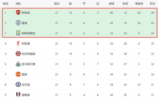 0-0!英超争冠3强全刹车:阿森纳领先6分,客场不输曼城=夺冠