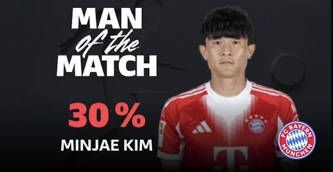最终经过德甲官网球迷投票,金玟哉以30%的得票率当选全场最佳球员。