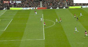 3' 曼联获得角球机会,马圭尔头球攻门,球击中横梁弹出。