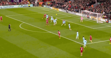第77分钟,索博斯洛伊右路内切传中,范戴克头球摆渡被封堵,埃基蒂克混战当中破门,裁判示意越位在先。