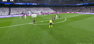 第14分钟,贝林厄姆送任意球,巴勃罗-马丁内斯主罚打门被挡