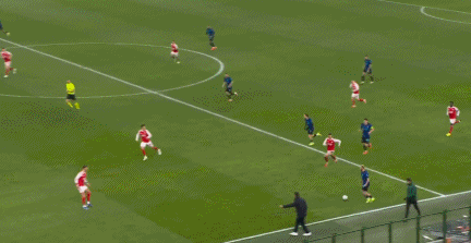 第62分钟,萨卡获得良机,巴斯托尼精彩放铲破坏
