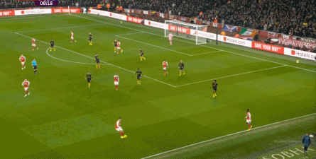 而在这两场比赛,卡里克派出了一模一样的人员和框架,在四后卫和双后腰之外,多尔古和阿玛德-迪亚洛分居两侧,从比赛画面大家都可以看到,尤其是在对手传中的时候,球侧的边前卫大多都已经出现在附近,而在后点,弱侧的边前卫也基本到位了: